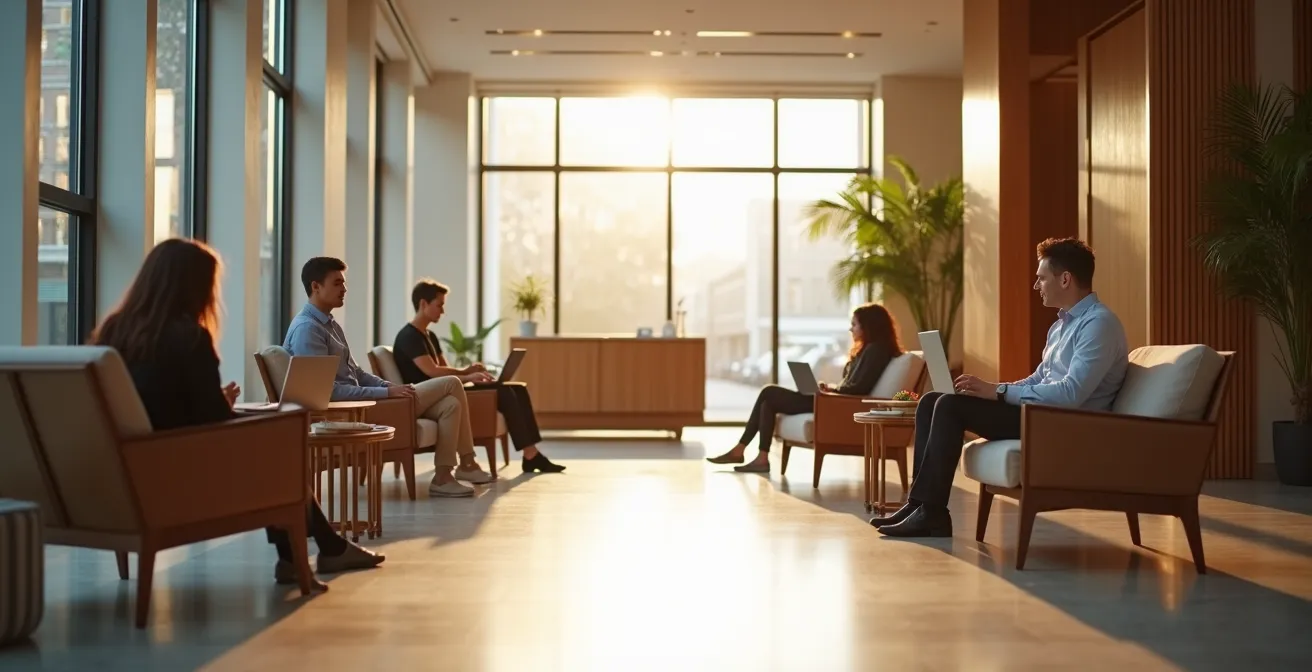 Le lobby d’un hôtel est un actif souvent sous-utilisé. En dehors des pics d’arrivées et de départs, cet espace coûteux en mètres carrés et en personnel génère peu ou pas de revenus directs. La transformation d’une partie du lobby en espace de coworking durant la journée est une stratégie de monétisation d’actifs dormants. Cette approche répond à une demande croissante des travailleurs nomades, des freelances locaux et même des clients de l’hôtel qui ont besoin d’un espace de travail professionnel pour quelques heures. Plutôt qu’un simple espace où l’on attend, le lobby devient une destination en soi, générant un flux de revenus additionnels et constant.